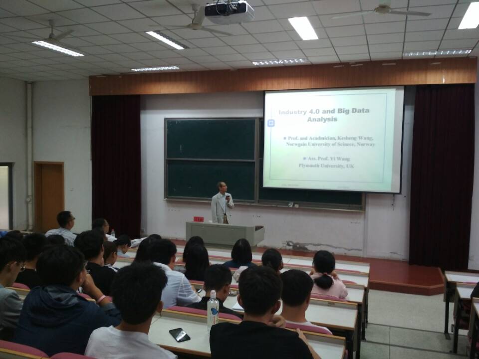 下午13:30,在嘉兴学院梁林校区13号楼报告厅,王克胜院士和Yi Wang博士为我院200余名师生做了题为“Industry 4.0 and Big Data Analysis”的精彩报告。 本次报告,王院士为大家讲解了什么是工业4.0,工业4.0产生的原因,以及他对工业4.0的认识和未来的发展趋势。围绕工业4.0这个热点问题,王院士同大家分享了他所领导的研究团队在利用Deep Learning技术解决工业领域中智能预测维修问题方面取得的优秀结果。Yi Wang博士同大家分享Big Data Analysis领域的研究现状、存在的问题以及未来的发展趋势,并重点介绍了他领导的课题组在该领域取得的一些研究结果。最后,王院士和Yi Wang博士向同学们介绍了挪威科技大学和英国普利茅斯大学的教学科研情况,以及这两所学校针对国际学生的招生情况。王院士和Yi Wang博士就学生的出国交流问题进行了解答,并殷切希望大家走出国门学习更多先进的科学技术和科研理念。这次报告为大家了解工业4.0和Big Data的研究现状和发展趋势提供了一个很好的机会,与会师生均觉得受益匪浅。